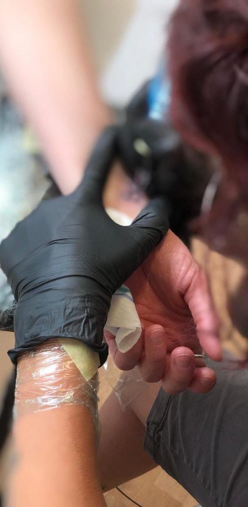 Außerdem kann man mich gerne für Events buchen. 2023 hat mich die Firma Star Trac für ihre Weihnachtsfeier gebucht und das war ein voller Erfolg. Ich habe bis spät in die Nachts die Mitarbeiter mit neuen Tattoos beglückt.